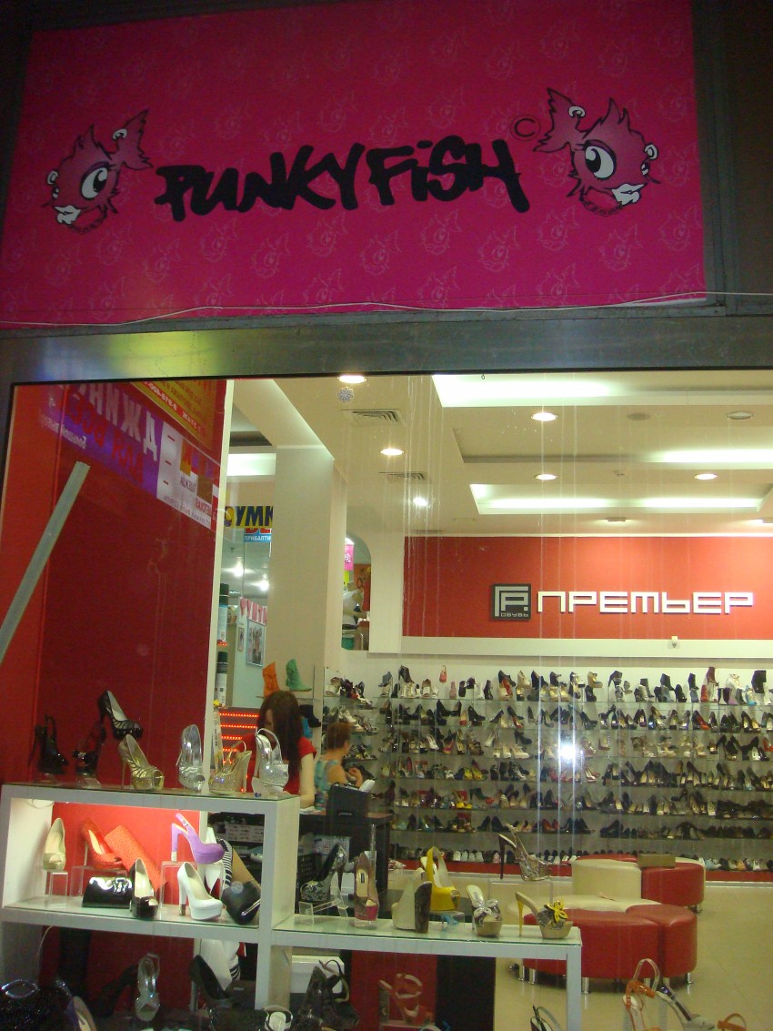 Вход в магазин «Панкифиш» осуществляется непосредственно через магазин «Премьер», по центру магазина находятся ступеньки, ведущие на второй этаж, а далее направо и Вы увидете женские манекены булого цвета при входе в отдел «Панкифиш».