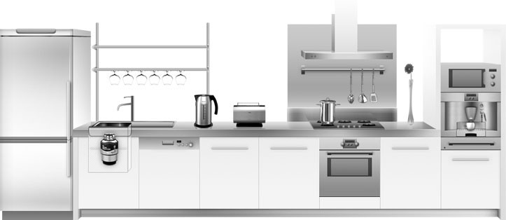 - встраиваемую бытовую технику: стиральные/посудомоечные машины, холодильники, вытяжки, духовые шкафы, варочные поверхности;