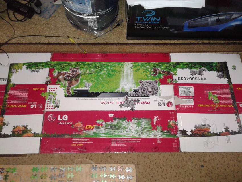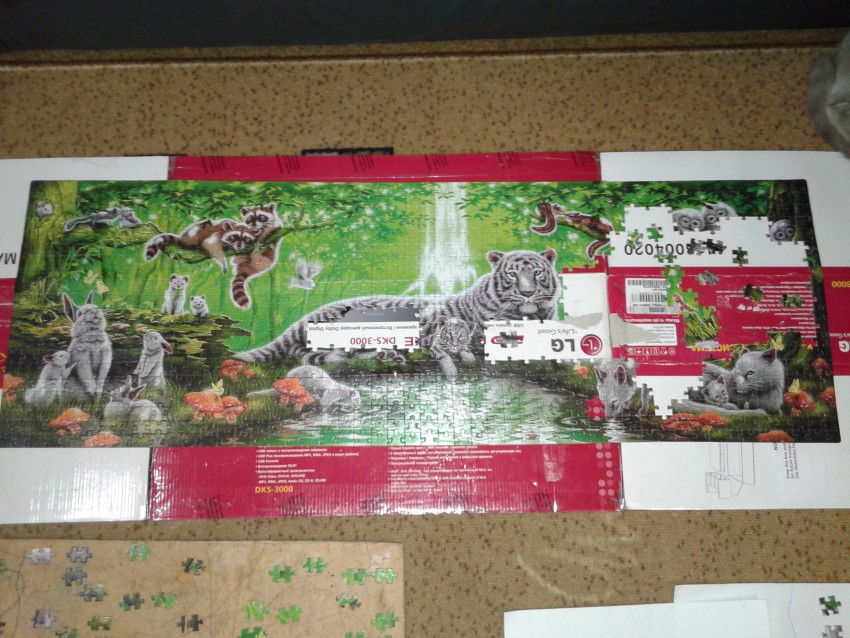 Отхватила моя дочь на дня в магазине пазлы, очень она любит их собирать. Но принеся домой, оказалось их там 1000 штук и это ей оказалось не под силу. Решил собирать я (ну куда их девать?).