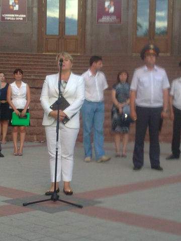 На фотографии запечатлено выступление Заместителя Главы города Сочи Ирины Васильевна Романец, а не начальника управления по образованию и науке администрации города Сочи Ольги Николаевны Медведевой.