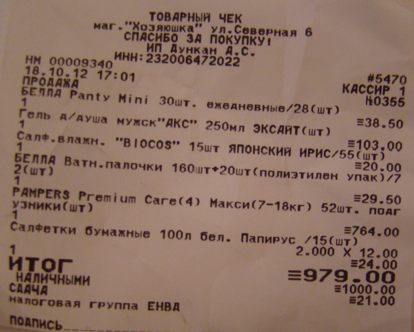 В магазине «Хозяюшка», что на Северной, нужные моему малышу памперсы оказались дешевле, чем я беру в другом месте. Памятуя об этом, зашла туда. Ребенок спал в коляске на улице, с папой. Мамы меня поймут: когда оставляешь ребенка, по магазинам бежишь как ошпаренная, хватая покупки. В очереди стала за двумя девушками, которых кассирша Олеся обслуживала ну прям вечность: просила найти мелочь, потом еще мелочь, они шарили по карманам, т.к. денег, видимо, было впритык. Наконец они прошли, я заплатила за свои покупки и выскочила на улицу. Сегодня достаю чек: я заплатила за чужие салфетки, прокладки и гель 161,5. Да, не проверила чек у кассы, моя вина. Но обидно, ведь я спешила…