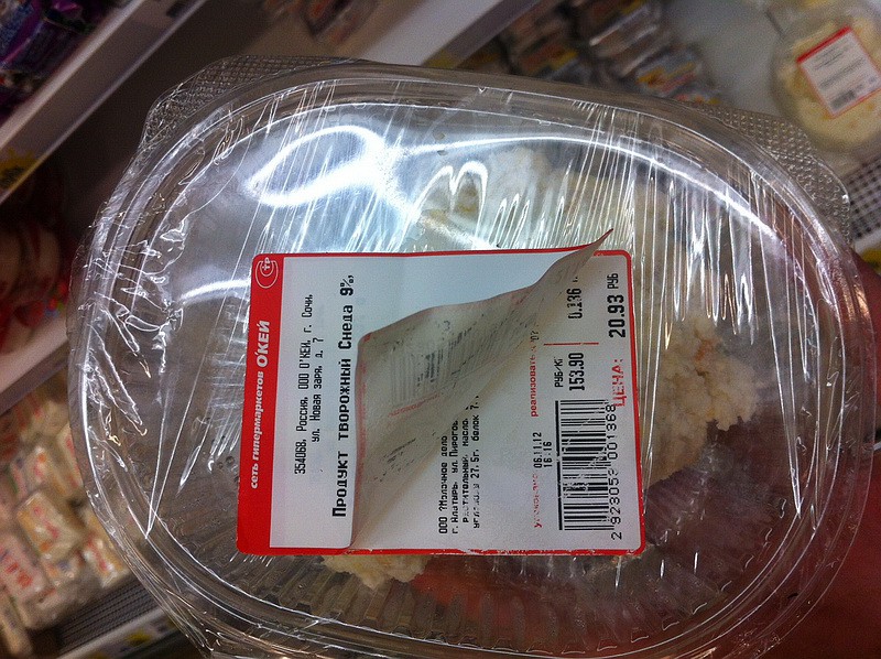 Икра красная. Свежайший продукт! Это ничего, что дата годности заклеена. Вы в «О’ кее» вас не обманут!