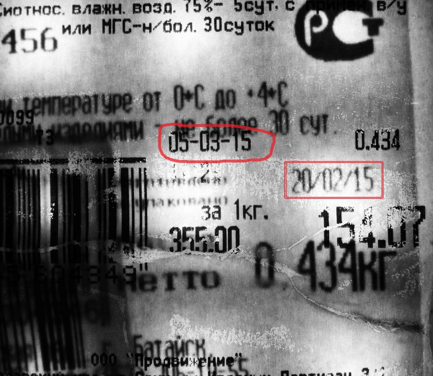 И еще, ярлык производителя, где тот признается, что упаковал продукт 20 февраля, похоронен под грудой наклеек. Срок хранения продукта – не более 30 суток со времени выпуска. На ценниках указана дата и время, но неизвестно чего, вероятно это дата отпечатанной наклейки. Как узнать, когда заканчивается предельный срок хранения? Отдирать ценники или требовать товаро-транспортные накладные на товар?
