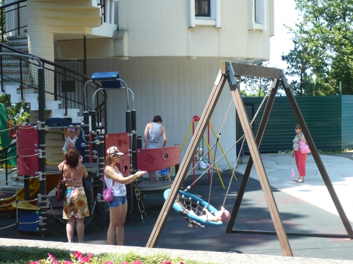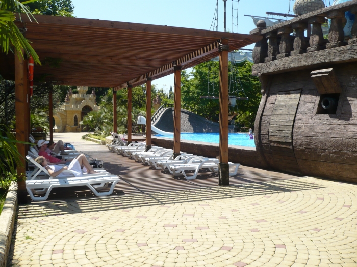 Здесь во всю играла музыка, шумели, смеясь и крича, дети и взрослые, что-то говорил аниматор (судя по специфическому акценту, турецкоподданный, но могу ошибаться), в общем, жизнь била ключом