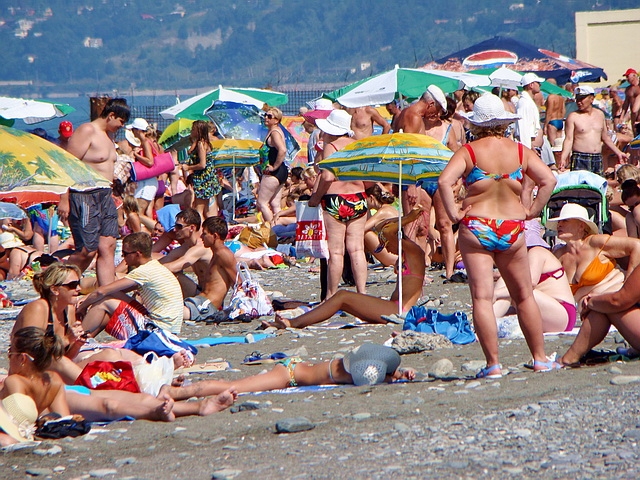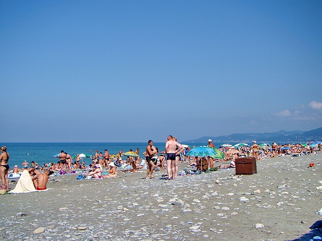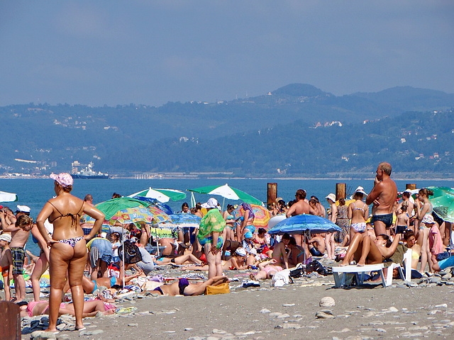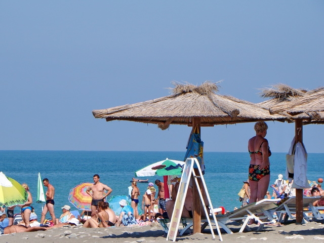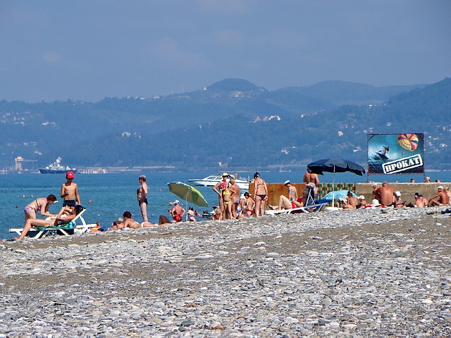 Как только кончается мусор, начинаются настоящие пляжи. Здесь чисто и много загорающих и купающихся граждан.