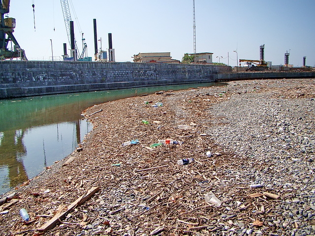 Слово стихийная вовсе не преувеличение, а указание на автора, воздвигающего нерукотворный хаос свалки на части городского пляжа «Ривьера». Посетив указанное на фото место, я задумался над тем, что влечет сюда любителей оставлять после себя пластиковые пивные бутылки, или заставляет тащить через весь город автомобильную покрышку с единственным желанием выкинуть ее именно здесь. Признаюсь ответов я не нашел, но рыбаки сидевшие во множестве на пляже, довольно быстро разъяснили мне ситуацию. Весь мусор сюда принесла река!