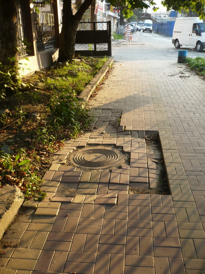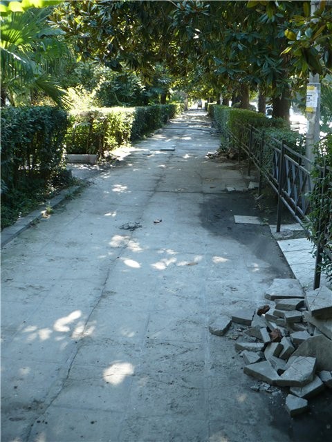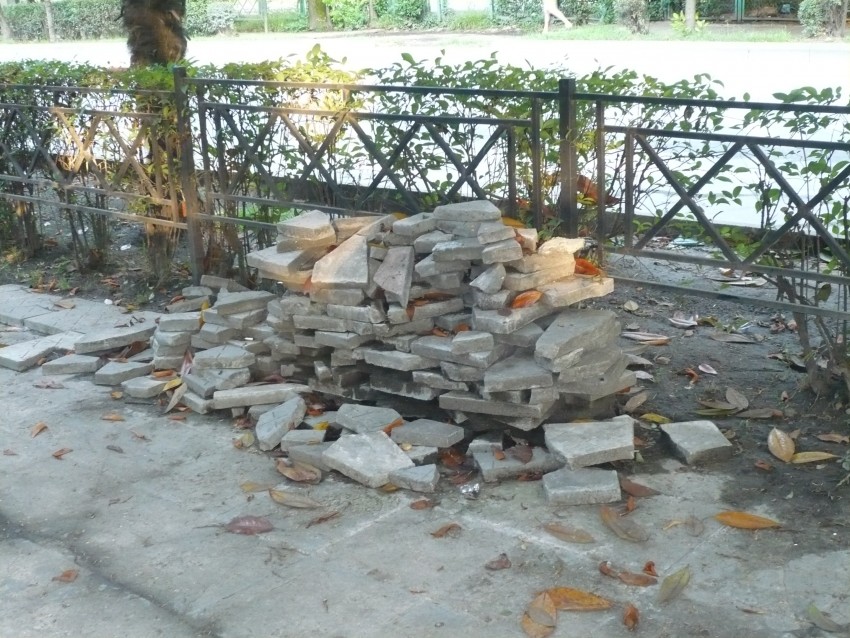 Плитка разбита в районе строительства Дублёра. Может плитка — по-мелочи, текущий ремонт, а основные расходы на подпорную стену (затратное это дело).