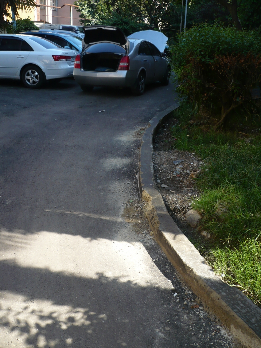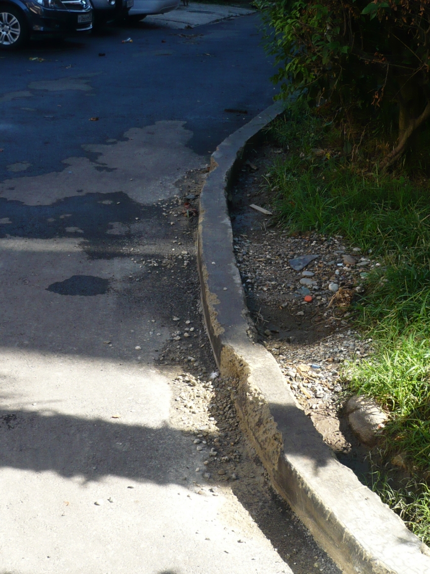 Как говорится, почувствуйте разницу, случайно попался нормальный бордюр, всего таких там я увидела — два, причём уже на выезде со двора…