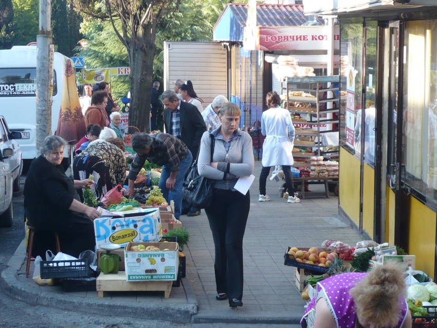 Но то, что я увидела сегодня — это тоже было выше понимания — вся торговля рынка велась на тротуаре с земли, в том числе и хлеб…