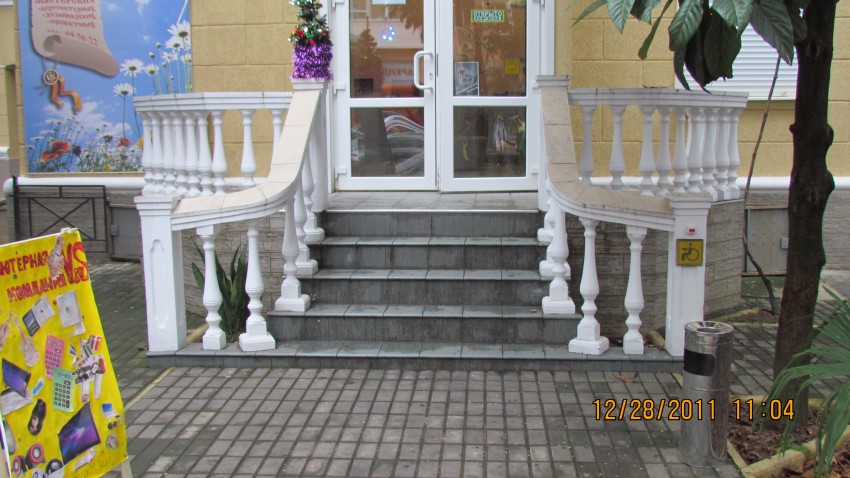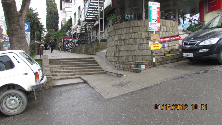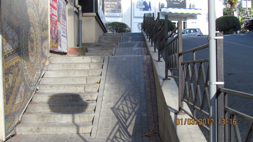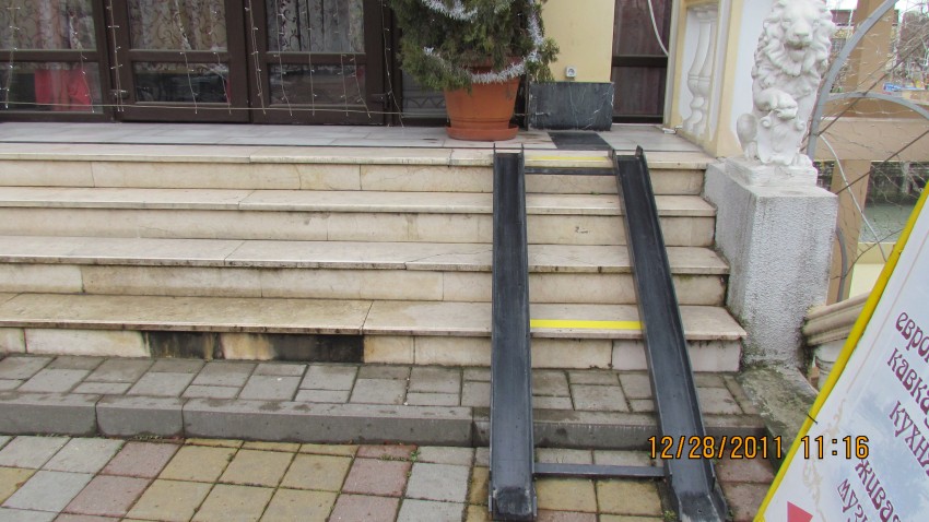 Ну, а теперь, сравним с реалиями нашего города… На нашем сайте о ситуации с пандусами уже писали 4 апреля 2011года, как оказалось, за это время ничего не изменилось… Рапорты о доступности среды продолжаются, ситуация в реальности — без изменений…