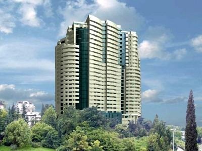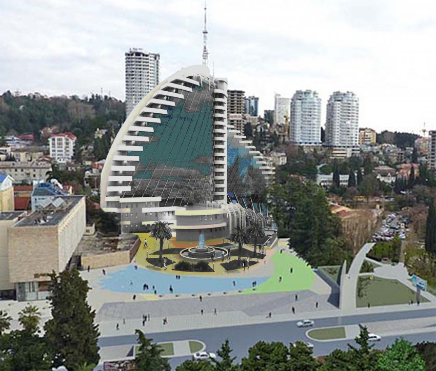 А это здоровенное здание, может быть и достойно специального приза и серебряной медали конкурса «Interarch» в Софии (Болгария), но места в Сочи, по крайней мере в Центральном районе, я ему не нахожу.