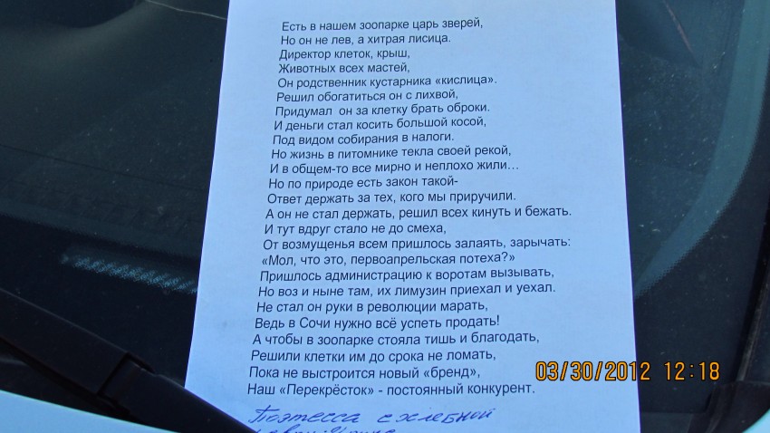 Конечно, в идеале, построить нормальный современный рынок, чтобы у одних людей была возможность выбора, а у других — работа… Сегодня мне дали прочитать одну басню о ситуации сложившейся с рынком и написанную женщиной торгующей здесь…