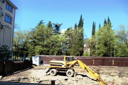 Недавно по ул. Черноморской проезжала на углу перекрестка к Цирку рядом со входом в нижний пар «дендрарий»стройка идет высотного объекта.