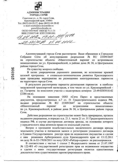 Свежие официальные подтверждения — документы подразумеваются. Причем подписанные чиновником рангом не ниже, чем зам. главы администрации Сочи.