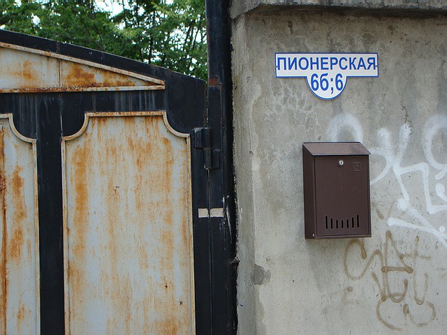 Подъезд для крупногабаритной строительной техники здесь один. Через маленький сквер у автобусной остановки «Театральная», мимо окон прокуратуры, под ветками редкого «Тюльпанового дерева» в тени которого стоит пара лавочек для отдыха граждан.