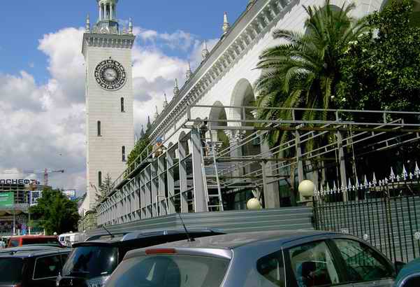 Архитектура города Сочи является одним из главных украшений курорта. Единое цветовое решение заборов, загородок и зданий приятно радует глаз туриста. Это здание Сочинского морского вокзала. О создании «безбарьерной среды» в данном случае речь не идет. Зачем же, действительно, человеку с ограниченными возможностями передвижения наслаждаться видами морского порта и города Сочи с такой высоты? Да и вообще, зачем нам туда?