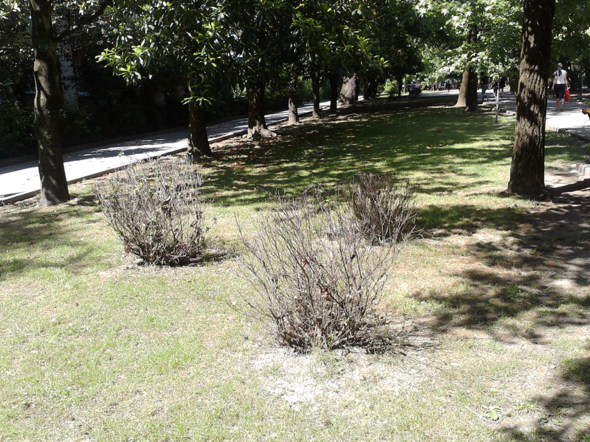 Количеству клумб было сокращено. Места, где раньше были клумбы можно узнать по выложенной кругом «колодяжке»: