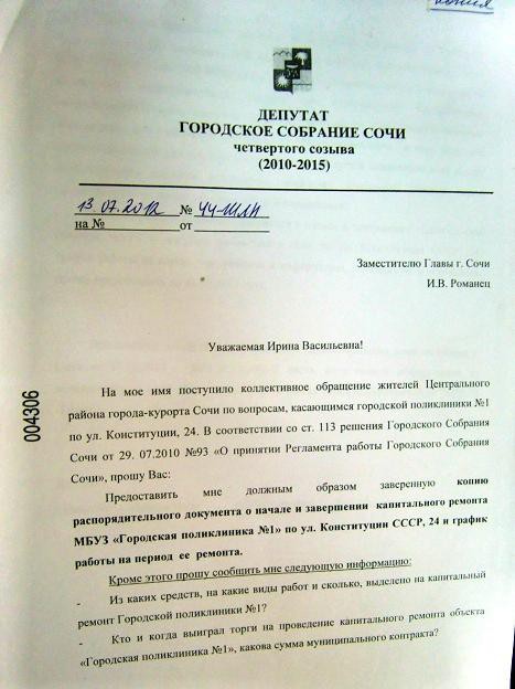Вот некоторые документы. Депутатский запрос. А в ответ — тишина…