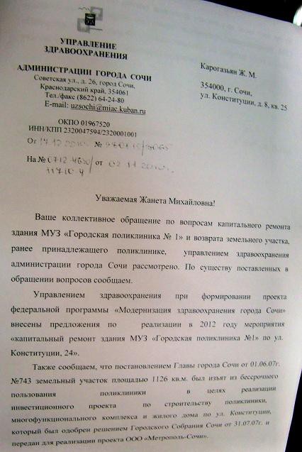 Вопрос назначения участков своего логического завершения пока не получил. Есть надежда, что поликлинике поможет Городское Собрание Сочи. Есть надежда, что сквер так или иначе сохранится. Если сочинцы поддержат.