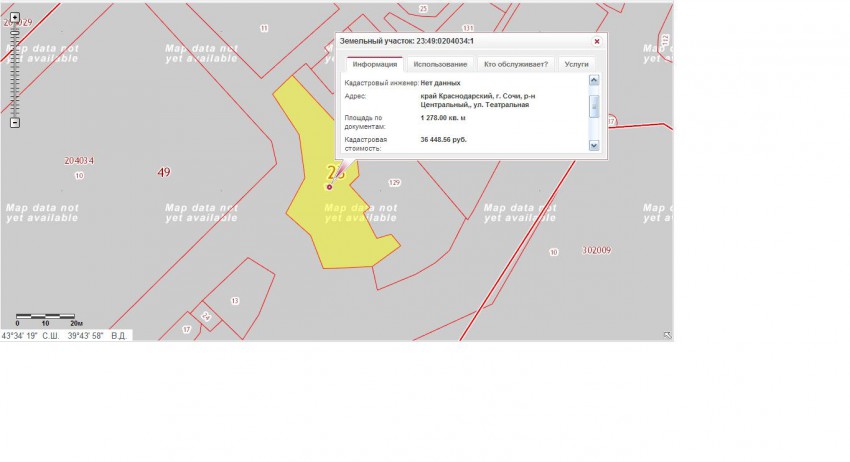 1. № 23:49:204034:13 площадь 367.00 кв. м. Разрешенное использование — нет данных