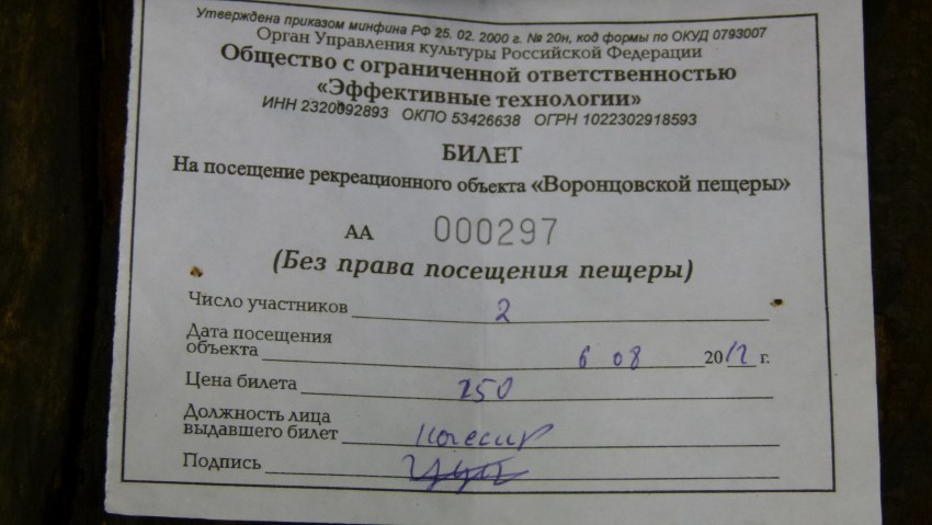 P.S. попросила охранника на шлагбауме (с учетом, что у них «экскурсионная» тропа) предоставить экскурсовода :))))) только жаль, что в билетиках разобрались только у входа в пещеру и разговаривать пришлось уже на обратном пути