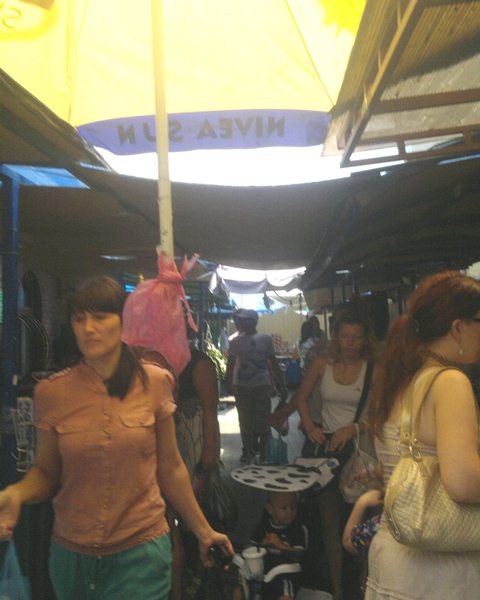 Тем более, что во время дождя там все равно нельзя пройти и не промокнуть. Частокол из зонтиков мало того мешает проходу так еще и несет в себе угрозу здоровью посетителей рынка, об эстетике речи в этом случае вообще не идет.
