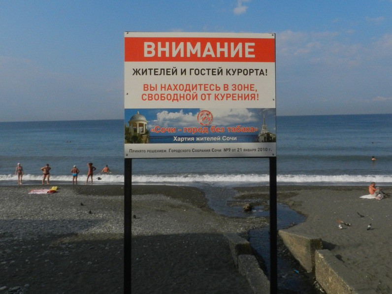 Прогуливаясь Вдоль одного из адлерских пляжей, обратил внимание на противоречивость рекламных и агитационных плакатов.