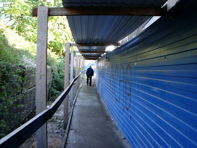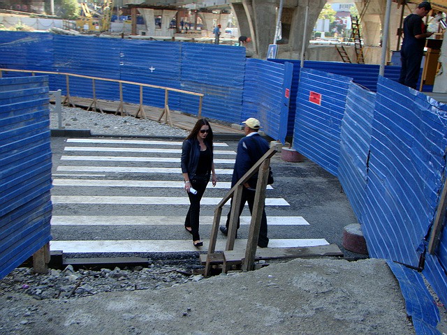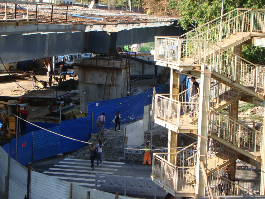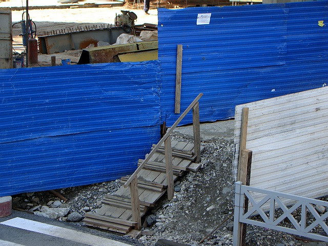 Эту фразу я слышал раз десять, пока переходил железнодорожный мост с улицы Чайковского. Найти проход, ведущий к мосту, удалось не сразу. Мое внимание привлекли женщины и дети, ныряющие под разгружающий арматуру кран. Оказалось, что проход через мост связан с реальной полосой препятствий. Строительство дублера Курортного проспекта практически уничтожило эту часть улицы Чайковского, превратив в строительный тупик некогда тенистую от деревьев дорогу. Проход по пешеходной части железнодорожного моста, связывающего часть района с ярмарками на другой стороне реки, стал опасным для жизни граждан. «Сволочи, мы здесь ноги ломаем»! Из разговора с жителями расположенных рядом домов выяснилось, что травмы и поломанные каблуки на этом участке стали нормой жизни. «На днях здесь пенсионерка упала, поскользнувшись на деревянной лесенке, молодая девушка сломала каблук, вывихнув ногу». «Мы никому не нужны» – заявляют жители. «Мэр обещал, что наведет порядок, уговаривал нас не пикетировать строительство. Никому верить нельзя».