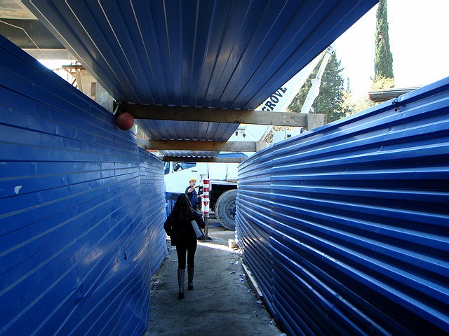 Не стой под стрелой. На стройке должна существовать техника безопасности, протискиваться под работающим краном, опасно для жизни. По переходу ходят старики, женщины и дети. Мэр просит сочинцев потерпеть временные неудобства, а им конца и края нет. С каждым днем терпеть эти неудобства становится опаснее. Нам обещают много славных дел, когда на пороге выборы. Мэр, чиновники, депутаты, кандидаты — все стремятся быть ближе к народу, клянутся в любви и верности, а заботиться о его нуждах не хотят. Олимпиада должна быть с человеческим лицом, развернутым в сторону жителей Сочи. Сделать нашу жизнь комфортной и безопасной ваша прямая обязанность, господа чиновники.