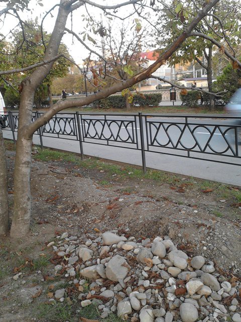 Это переход от 7 школы к висячему мосту. Несколько месяцев из-под земли бил фонтанчик. Течь устранили, а вот уложить брусчатку не захотели/не посчитали нужным/забыли. Группа сочинцев, не будучи специалистами в этой области, сделали чужую работу как смогли. Честь им и хвала за это.