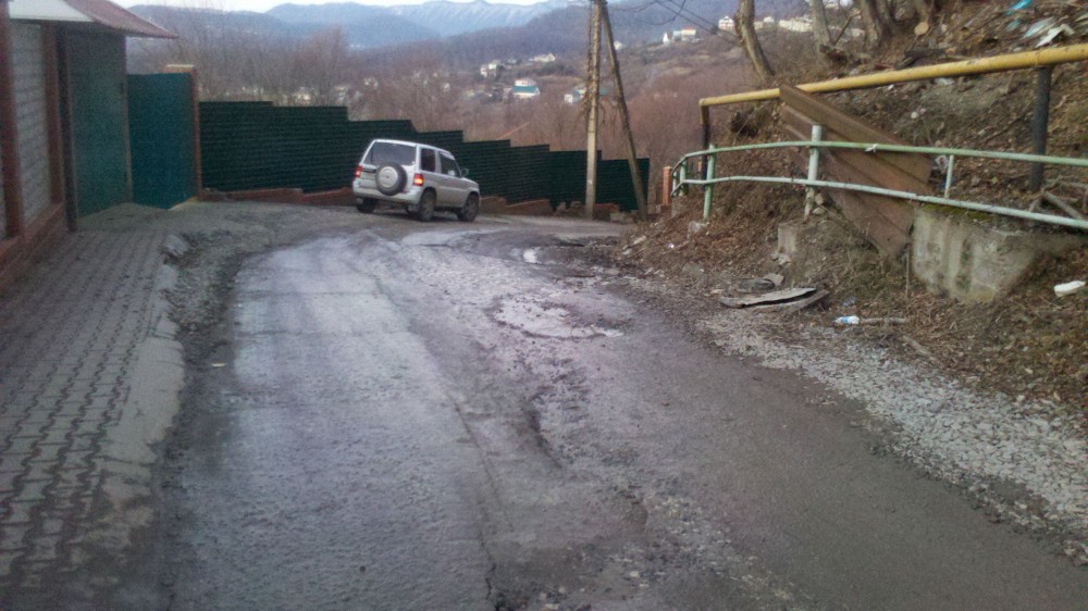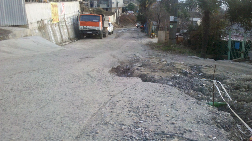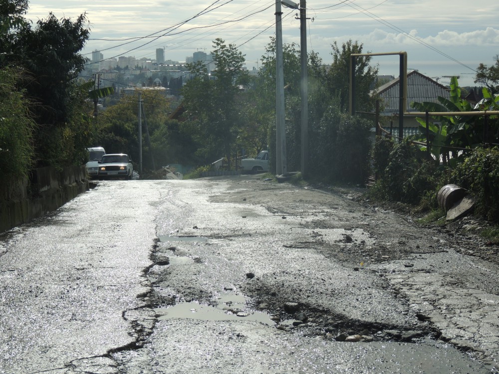 Вы думаете, это где-то очень далеко? Отнюдь. Центральный Сочи, в нескольких км от дачи Путина. И даже когда он приезжает спешно бетонируют первые 2-3 ямы в начале улицы, заметные с ул. Виноградной, чтоб не осрамиться.