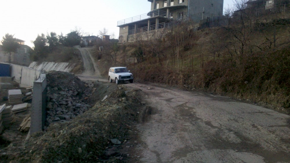 Серьезный и затратный, надо заметить, проект. В середине улицы строителям даже был куплен (или конфискован у кого-то) пустующий участок земли и началась большая стройка. Успели построить несколько опорных стенок на оползневых участках дороги: