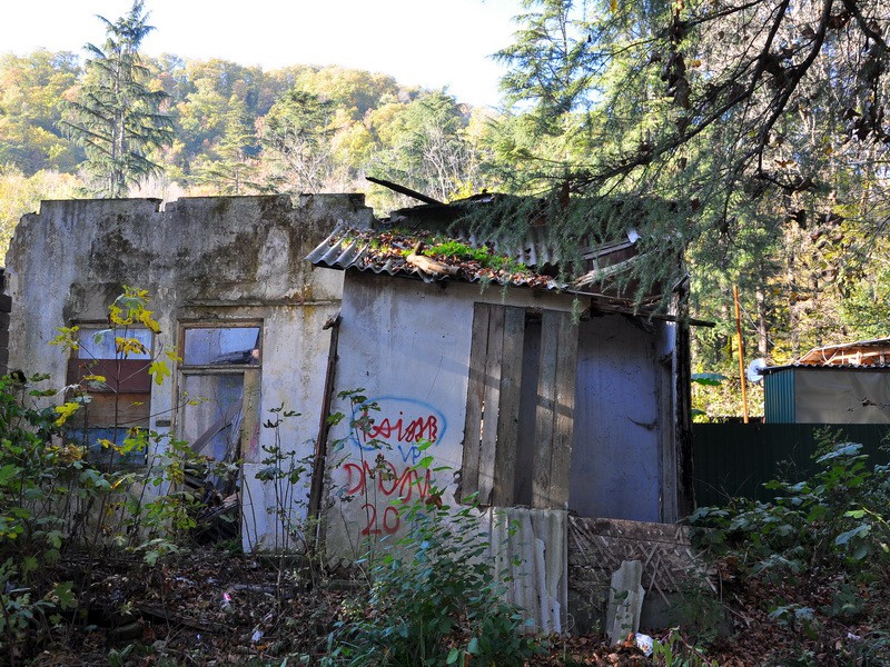 Холдинг хозяйничает и в земельных вопросах на граничащей с ним территории. Этот старый барак «жилой», здесь прописаны люди. Жить здесь конечно невозможно, но там где стены еще уцелели, люди живут, завесившись от мира белыми простынями. На это место находились десятки частных инвесторов готовых расселить старые развалины, но все упиралось в зону охраны лечебных вод, а попросту палки в колеса от Холдинга.