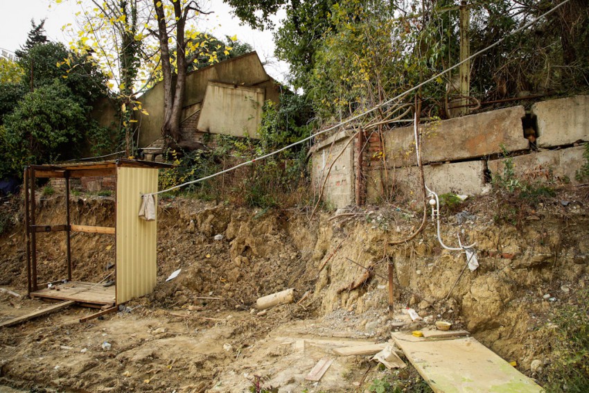 Не получив разрешения на дальнейшее строительство, ТСЖ «Театральное» свернуло на участке все работы. Однако, снос старого дома, вырытый экскаваторами котлован, нарушенное водоотведение, привели к угрозе оползня для памятника природы. Рухнувшая стена, подтвердила эту печальную участь для любимого сочинцами зеленого уголка.