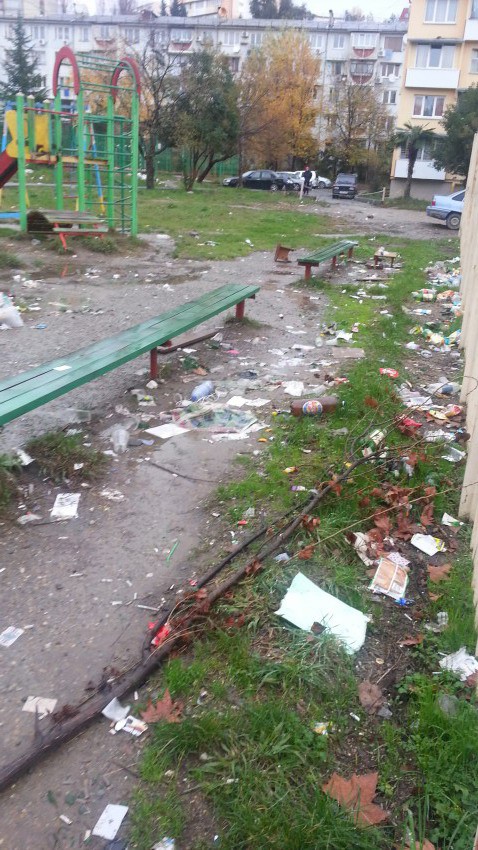 Собственно так выглядит детская площадка. По вечерам постоянные пьяные посиделки с вытекающими из этого последствиями. Власти хоть бы наряд ППС поставили, да подмели, самим не стыдно то?