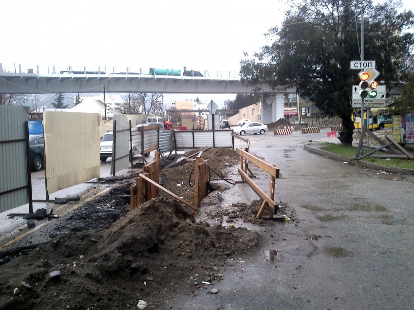 На данный момент участок от Краснодарского кольца до подъёма на Макаренко представляет из себя полосу препятствий, как для пешеходов, так и для автомобилистов.