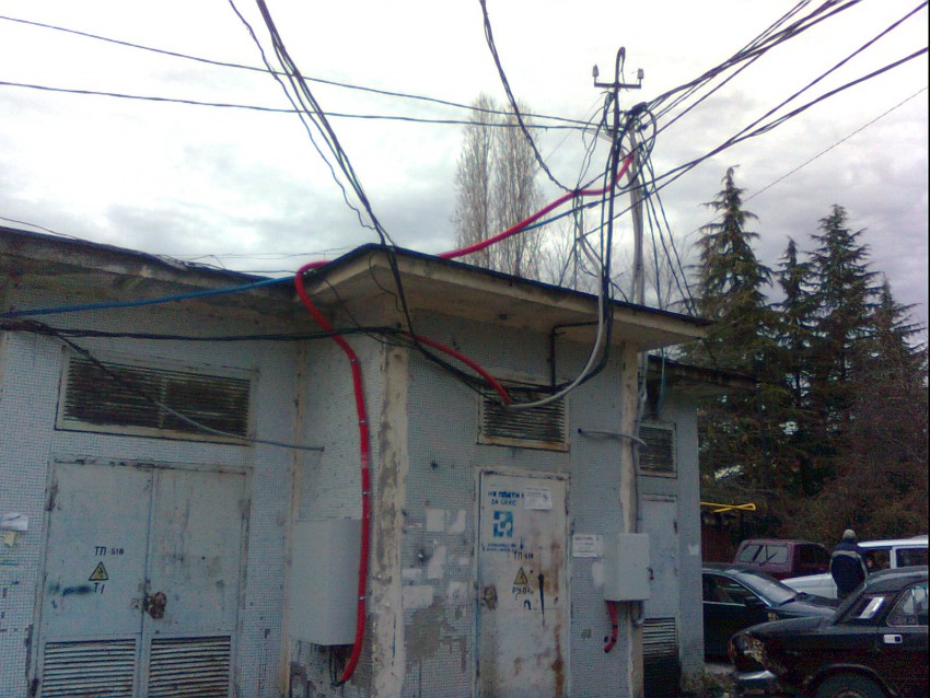 , причем совсем недавно толстенный такой провод вел прямо к Ресторану «РИС», сейчас правда его там нет, но зато все ларьки подключены к несчастной высотке!