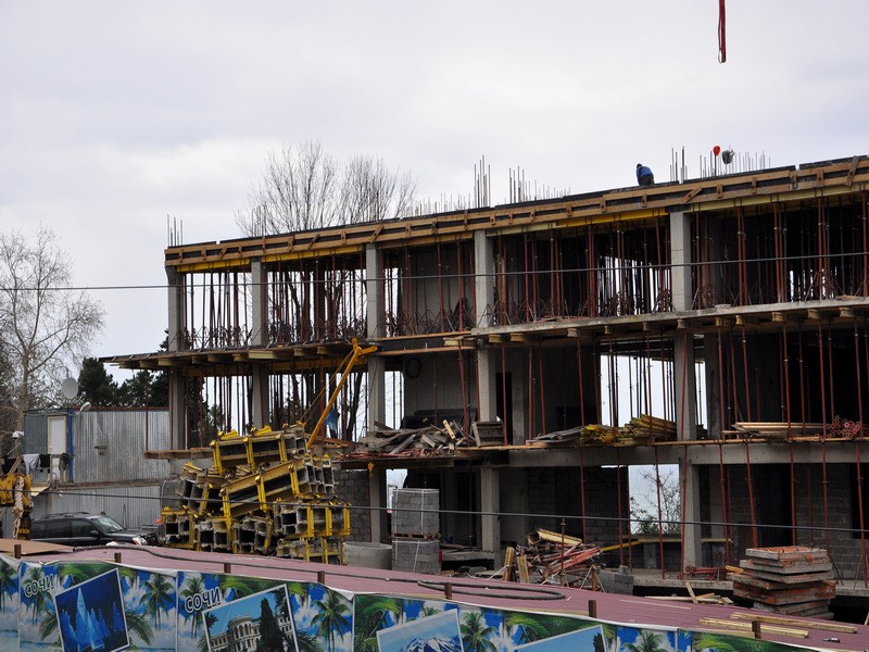 Очевидно, в Сочи разрешения на строительство имеют свойства тянущейся резины. ООО «СО – Петроль» получили разрешение на трех этажное здание. Место строительства Курортный проспект. Спрятавшись за забором, застройщик вместо трех этажей построил четыре, и готовиться вытянуть пятый. Администрация как всегда ничего не видит. Это потом она разводит руками, грозит судом, заметив, что вместо положенных шести этажей выросли девять или вместо трех – пять. Контролировать сроки, этапы и этажность в городе видимо некому. Если на заборе нет паспорта застройки, это резиновое здание и его этажи будут тянуться до самого суда, который потом введет его в эксплуатацию. Пока власти думают, как бороться с незаконным строительством, этажность незаметно растет, а вместе с нею растет реальность, что Сочи встретит гостей олимпиады, закрытыми от взглядов недостроями.