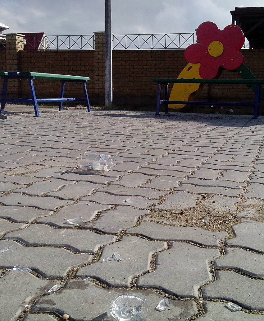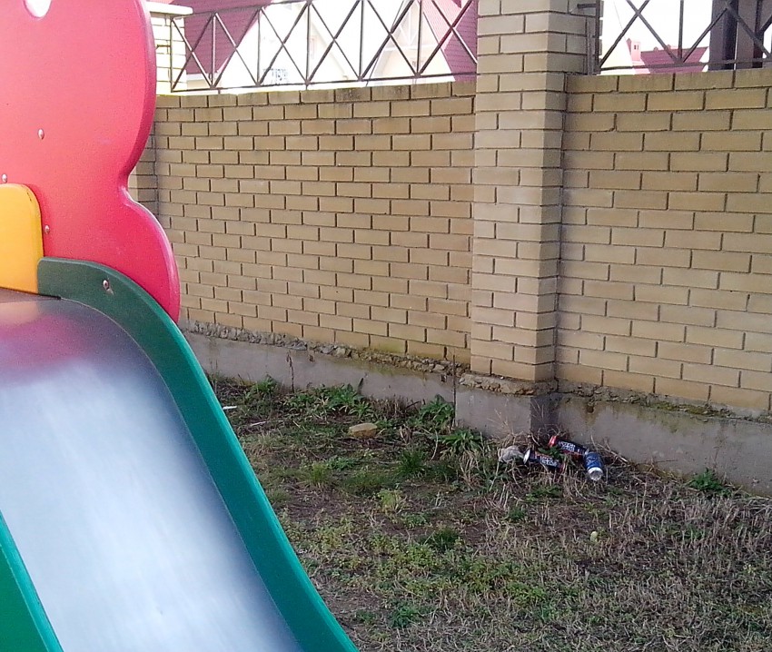 Уже нет сил терпеть… Сегодня пришли на детскую площадку с ребенком (малышке годик), а там, просто не передать словами, что творится… Битое стекло, пивные бутылки, банки от алкогольных коктейлей. И такое мы видим каждый день, не смотря на то что местные мамочки каждый день это убирают. На нашей детской площадке около 20 мусорных бочков. И все равно, вот такая красота (фото прилагается) ждет нас каждое утро.