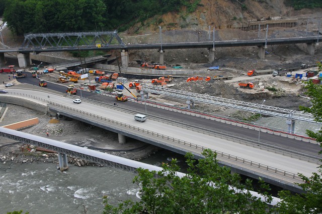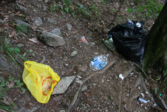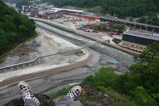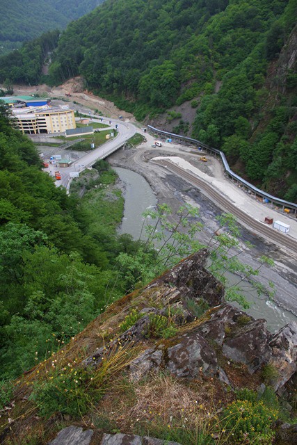 собственно всё видно, горе — строители покупают в ближайшем «кайросе» еду и идут в лесу «культурна манамана» отдохнуть так как они это понимают. В лесу большая часть покрыта всевозможными нечистотами и продуктами жизнедеятельности. Они там и спят, и жрут, и бухают, и е… Мерзко. Хуже некуда. Подобная же ситуация на левом берегу Мзымты в лесу у моста на трамплин…