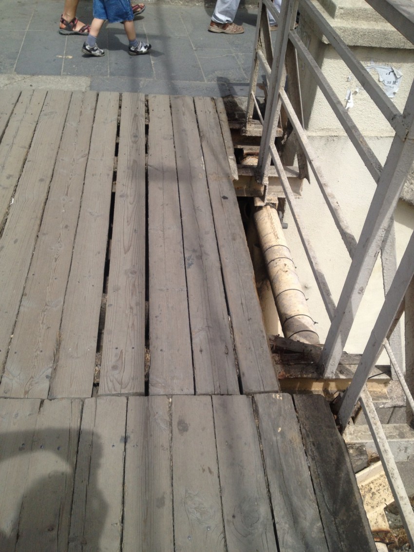 С детства не представляю себе центр города без висячего моста… И в школу по мосту этому ходили и из школы выбегали на смерчи смотреть… И раскачивались на мосту… А сегодня обнаружилось, что мост наш экстремальный… Еще недавно просто в одной из дощечек торчал здоровенный гвоздь… А теперь… В общем во всей красе… Будьте осторожны!!!!!