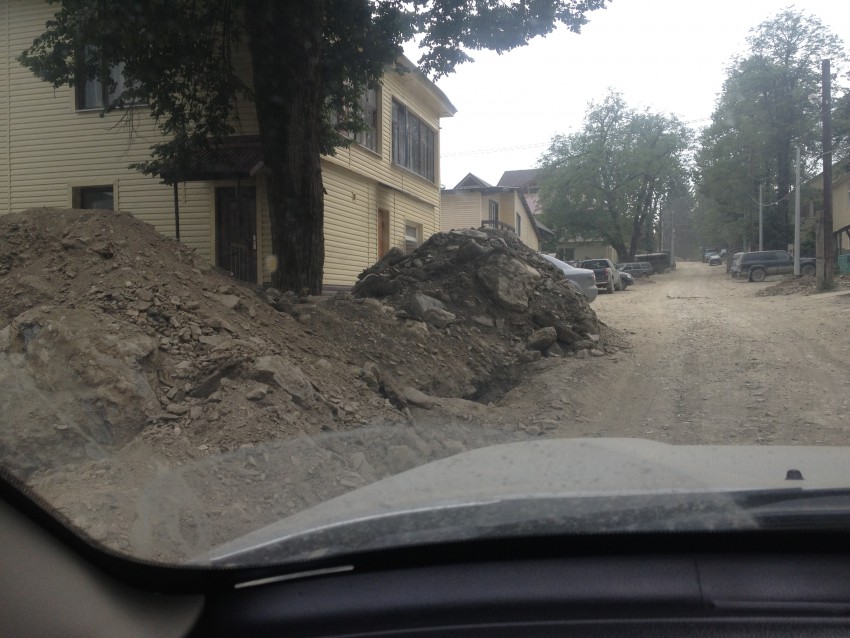 Все фото сделаны вчера, о сроках завершения этого безобразия, остается только догадываться, а пока жители КП смиренно глотают пыль и перепрыгивают через окопы.