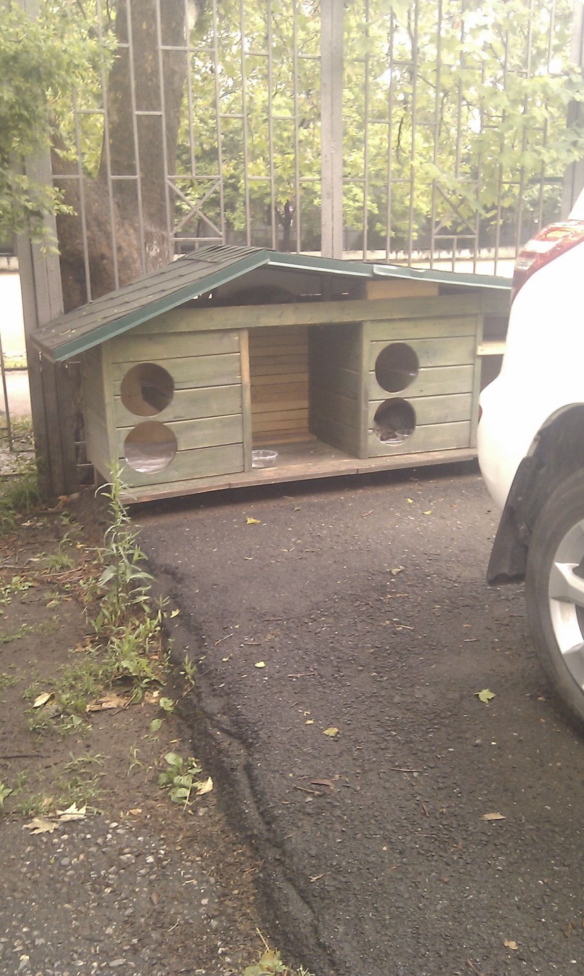 Снимки с мобильного, но должны быть видны питомцы и чистые подстилочки для них.По расспросам–сделано жильцами, такие же—еще в нескольких двориках.В принципе–один мастеровой найдется, остальные–скинулись, как вариант.Или в виде общедворовой акции.Молодцы, настоящие люди–хозяева двора, улучшающие свое окружение.Спасибо, доставило очень… В будущем приюте будет больше свободных мест.Да и зачем он этим жильцам?:)
