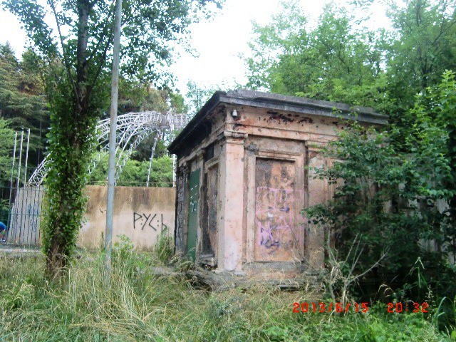 На отрезаемом участке имеются две постройки: маленький учебный корпус, который просто убит, и еще одна крошечная построечка — она тоже находится в плачевном состоянии. Предположительно, именно это строение вместе с фонтаном входит в историко-архитектурный комплекс «Вилла Вера».
