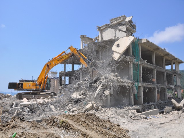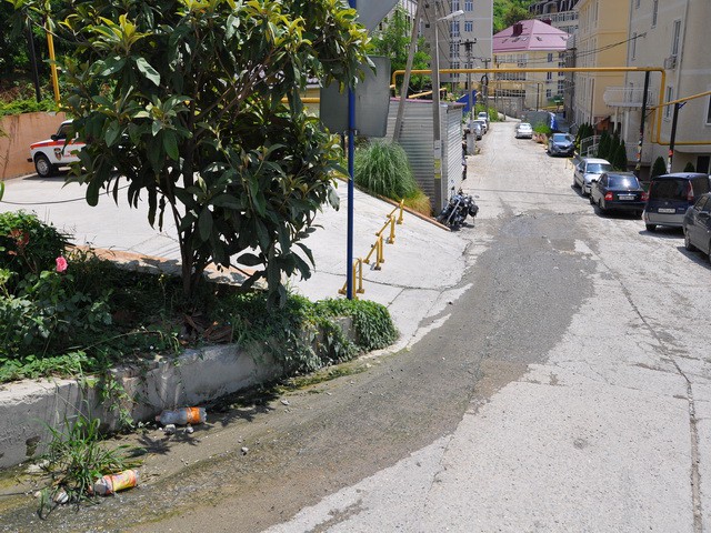 Владелец семиэтажного дома, который сегодня сносят как самовольное строение, собрал сточные воды ливневого коллектора и вывел их прямо на дорогу. Жильцы нижней улицы, куда устремилась вода, тоже проявили сообразительность и направили поток в другое русло, осчастливив соседей на улице Фадеева снизу…
