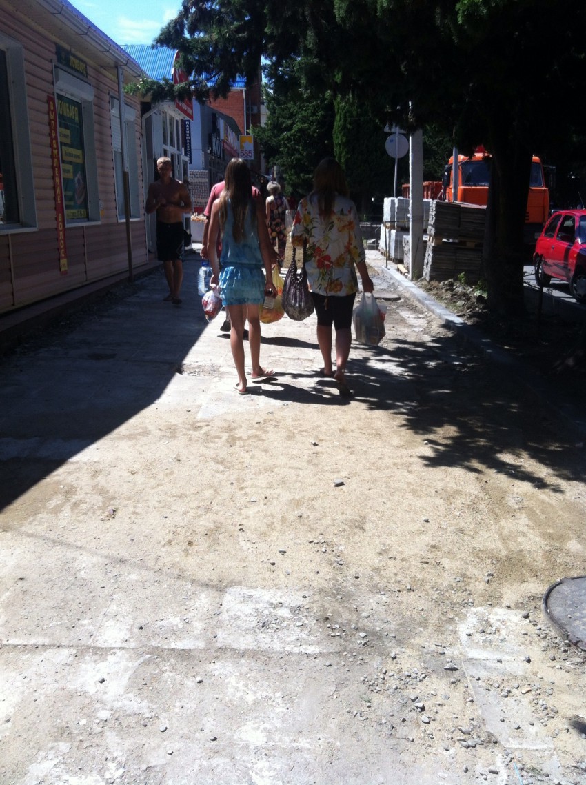 Конец июля, сезон в разгаре, а в Лазаревке не нашли другого времени как плитку переложить по улице Павлова. Так приятно отдыхающим и местным жителям идти по улице по колдобинам и песку… Слов нет, одни фотоКолодяжки forever!!!