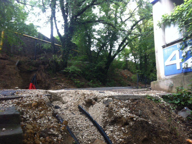 Проезжал сегодня мимо дома 42 по ул Бытха. Увидев треснувшую от сползающего грунта и нависшую над газовой трубой стену просто обалдел. Ведь в пяти метрах от этого места стоит пятиэтажный дом! Может те слуги народа, в чьих это полномочиями, дадут волшебный пендаль соответствующим безответственным? Представить страшно, что будет, если стена упадёт…