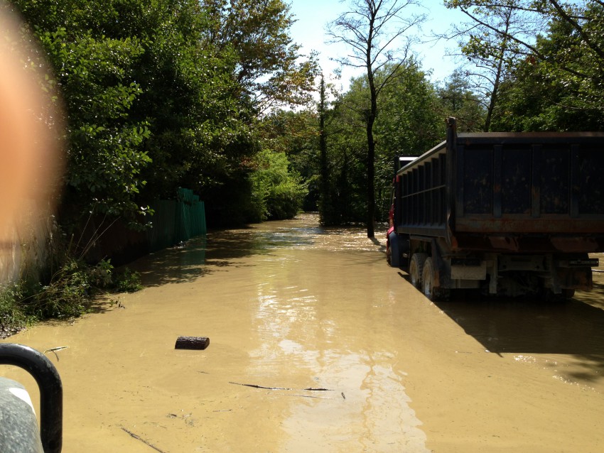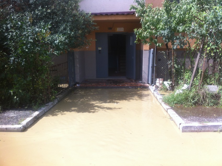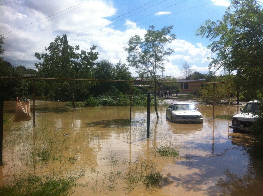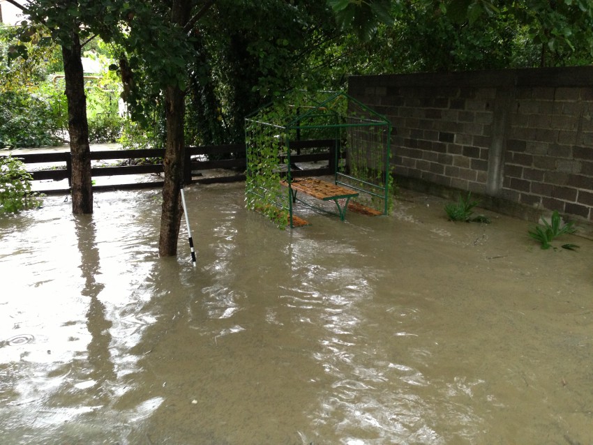Канава за двором… Во дворе была травка, беседка, гамак и мангал.))) теперь большая грязевая песочница! Соседям меньше повезло, позатапливало первые этажи!