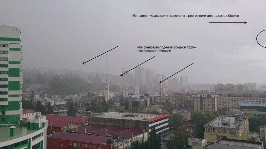 Т.е. исходя из этого, «рассеиватели» ну просто мечтали видимо, чтобы дождь прошел как раз над головами сочинцев и «больших гостей» города.