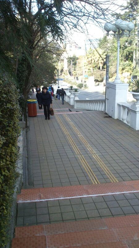 Комсомольский сквер, переход к почте ступени как на фото. Далеко?- посмотрите. Железки уже сломаны, надорваны, торчат. Пластик-резина соответственно вздыбилась, так и норовит зацепиться за обувь. НЕДОЛГОВЕЧНО, НЕ КАЧЕСТВЕННО, НЕ ПРОДУМАННА нагрузка от тысяч пар обуви ЕЖЕДНЕВНО.